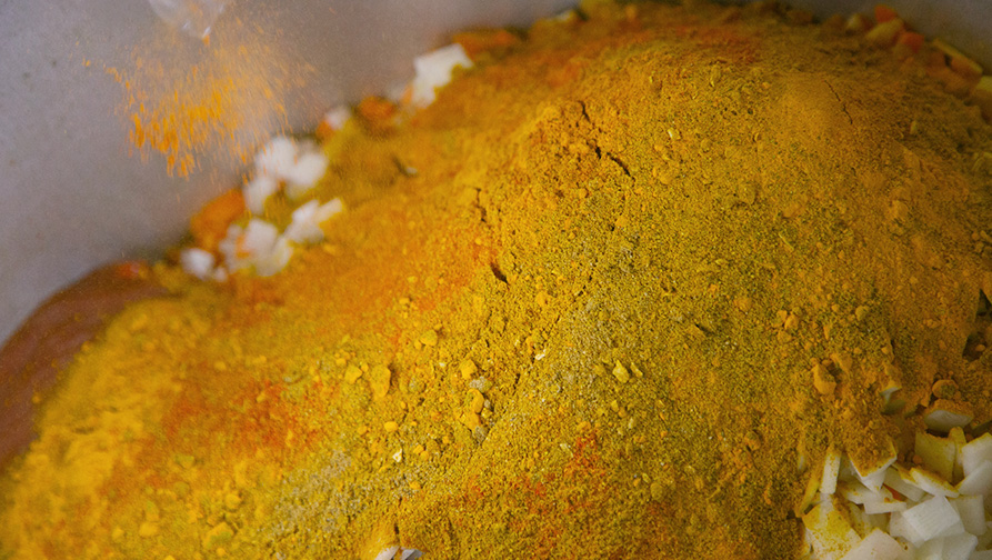 厳選スパイスを調合したカレーパウダーに加え、ターメリック、マサラ、クミン、ナツメグ、ブラックペッパー、カイエンペッパーなど、約30種類のスパイスを絶妙な配合でブレンドしています。