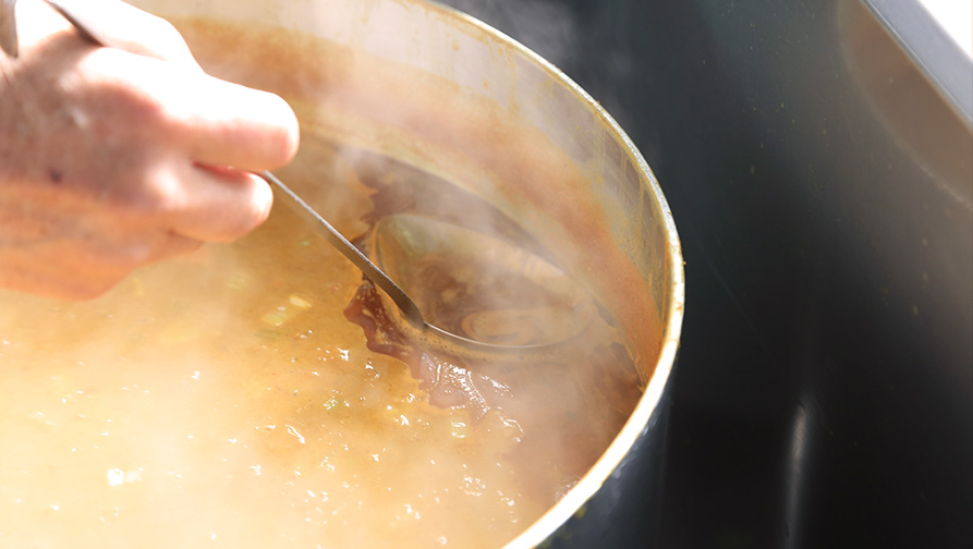 肉や野菜を煮込むことでとれるコクや旨みのあるダシ汁は、カレーをより美味しく引き立て支える底力の役割を果たしています。
