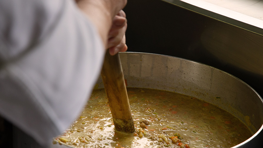 野菜の中でもセロリという日本の食卓で馴染みの少ない具材を多く使っていることが特徴で、それらの野菜をじっくり煮込んで作り出す独特の旨味がおいしさの秘訣です。